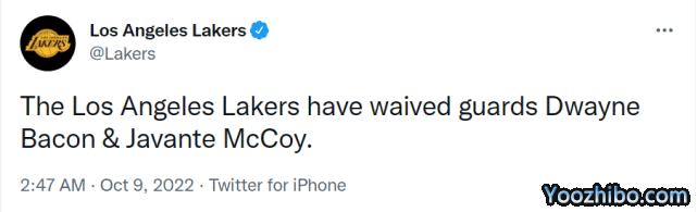 被湖人裁掉的德维恩-培根此前为球队出战了2场季前赛,场均5.5分4篮板2助攻;贾文特-麦考伊在季前赛中没有上过场。