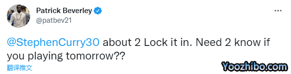 JRS直播网10月09日, NBA季前赛湖人客场对阵勇士的前一天,湖人新援贝弗利公开约战库里,发推写道:@库里,我准备好专注于比赛了。需要知道的是你明天打不打?