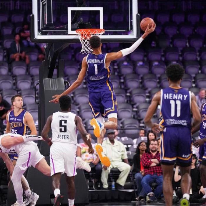 文班亚马表现出众,现场有女球迷邀请他参加舞会,可惜今天亨德森不幸撞伤膝盖,因伤早早退出比赛。