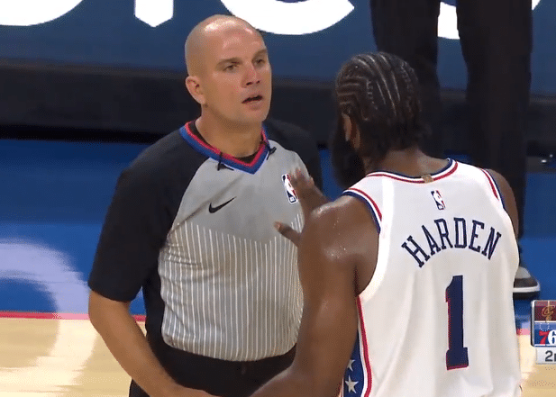 第二节,哈登先是带着替补阵容打,外线命中三分打进本场个人第一球,之后76人主力回来,哈登遭米切尔犯规两罚全中,后者不满吹罚和哈登交流;哈登持球反击一条龙轻松上篮,上半场最后时刻,哈登持球单挑迪恩-韦德,一顿风骚操作晃倒韦德,被撞到仍把球打进,哈登不满裁判没有吹罚2+1,之后哈登拉人犯规赔上一罚一掷,然后哈登找裁判理论。