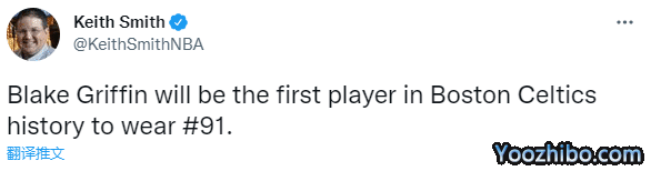据名记Keith Smith报道,格里芬新赛季将身穿凯尔特人91号球衣,改穿91号的原因是他想致敬名宿罗德曼。
