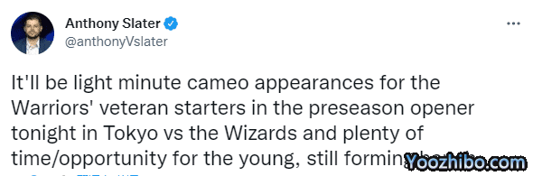 JRS直播网10月01日讯 ,NBA季前赛就要来了,勇士将在东京和奇才打响季前赛揭幕战,卫冕冠军的首战计划曝光,据名记Anthony Slater报道,库里、汤普森等勇士老将首发出战,但仅是短暂的客串出场,队内的年轻球员将获得充足的上场时间和机会。