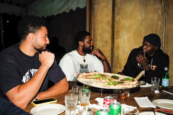 篮网众球员一起共进晚餐,杜兰特、欧文和西蒙斯三巨头坐在同一桌,他们坐在一起开怀畅聊,喝了一些酒和饮料;爱德华兹、米尔斯和罗伊斯-奥尼尔坐在一桌,小库里和格雷等人一桌。