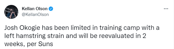 JRS直播网10月01日讯 ,新赛季还没正式开打,NBA又添伤员;据太阳随队记者Kellan Olson报道,球队后卫奥科吉遭遇左腿筋拉伤,将在两周后重新进行评估;换言之;太阳新援奥科吉至少伤停2周,这说明受伤程度至少是腿筋一级拉伤。