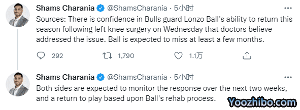 JRS直播网09月30日,据名记Shams报道,公牛队后卫郎佐-鲍尔已在本周四成功接受了膝盖手术,预计缺席几个月。