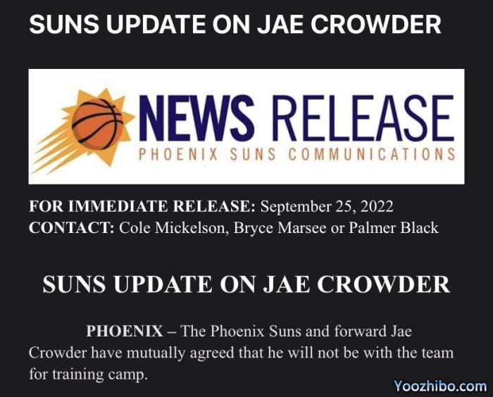 JRS直播网09月26日,太阳官方正式宣布,球队已与克劳德达成不参加新赛季训练营的协议,克劳德将不会参加明日的媒体日和后天开启的训练营;之后克劳德发声告别太阳:感谢太阳,迎接新的挑战,99号很快回归。