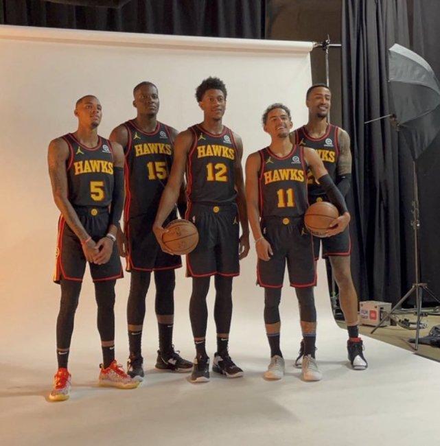 老鹰队拍摄定妆照,新首发五虎首次同框。穆雷、特雷-杨、亨特、卡佩拉和科林斯站在一起合影,他们组成了新赛季老鹰的核心阵容。特雷-杨在新闻发布会上说道:“我们相信我们能赢得一个总冠军,我知道我能做到。”