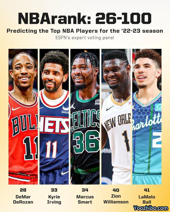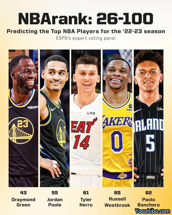 JRS直播网09月24日著名NBA媒体ESPN评出了一年一度的NBA新赛季百大球员,今日放出了100-26的球员,具体排名如下: