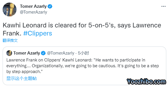 快船球星科怀-莱昂纳德已经获得5对5对抗训练的许可,值得一提的是,小卡上一次出现在NBA赛前已经是500天前。