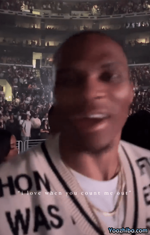 JRS直播网09月18日,近日湖人球星拉塞尔-威斯布鲁克现身著名说唱歌手肯德里克-拉玛尔在洛杉矶演唱会,在现场,威少满脸笑容,跟随着拉玛尔的现场旋律一起唱着这句歌词:我喜欢你把我排除在外(i love when you count me out)。