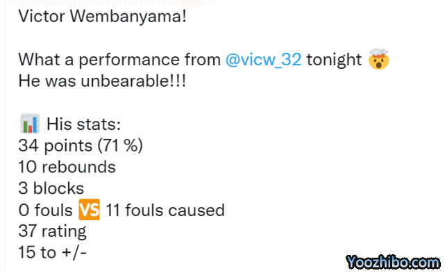 文班亚马展现了极强的统治力和高效率的攻防,整场比赛,他没有一次犯规,却造成了对手11次犯规。此前报道称,文班亚马已经吸引了多支NBA球队的关注,凯尔特人的总经理史蒂文斯也亲赴欧洲考察他。