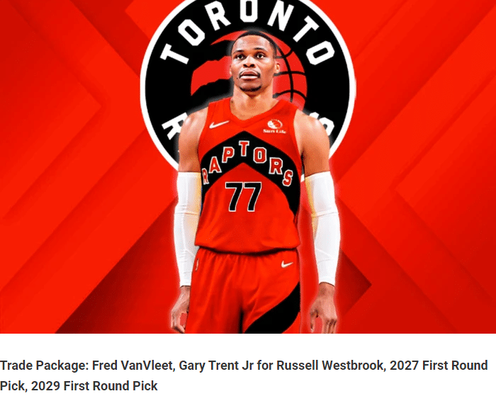 具体的交易方案是湖人把威少和两个首轮签送到猛龙,换来范弗利特和小特伦特。
