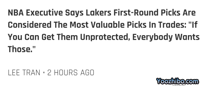 JRS直播网09月05日讯 ,一位NBA高管接受记者Sean Deveney的采访,谈到了湖人的两个首轮签,在他看来,这是联盟中的选秀权里最有价值的。
