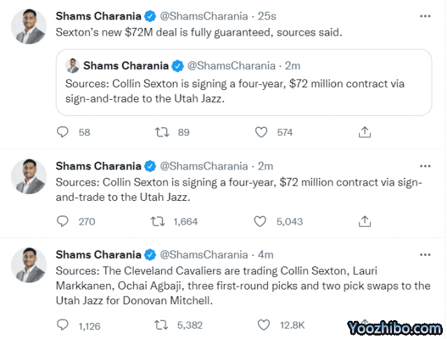 JRS直播网09月02日讯 ,据名记Shams和Woj报道,骑士和爵士达成了一笔8换1的交易协议,骑士送出3个无保护的首轮签(2025年、2027年、2029年)、2个首轮互换权(2026年和2028年)、马尔卡宁、塞克斯顿、阿巴基,得到爵士的米切尔。塞克斯顿签下4年7200万美元的合同,全额保障,以先签后换的方式加盟爵士。