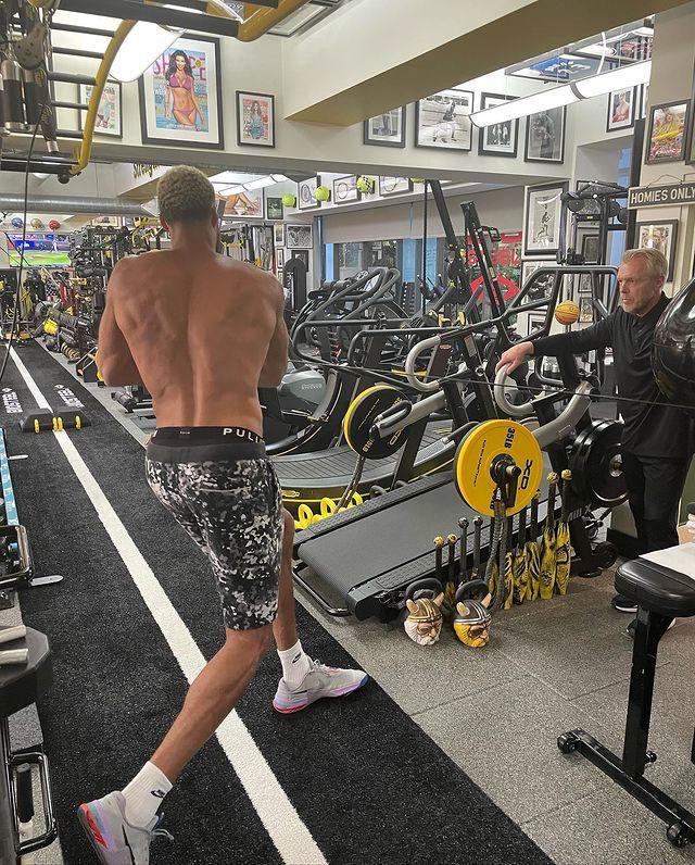 JRS直播网06月14日讯 ,爵士中锋鲁迪-戈贝尔更新社媒,晒出了自己的最新训练照。照片上的戈贝尔,已经染了一头金发,赤膊上阵,进行包括拳击在内的各项训练,硕大的肌肉格外抢眼。刚进入联盟时,戈贝尔还是一个看上去很瘦的中锋,力量和体重明显不足,经过几个赛季的苦练,如今的他已经越来越壮,俨然一个魔鬼筋肉人!戈贝尔晒照后不久,霍华德为他点赞。