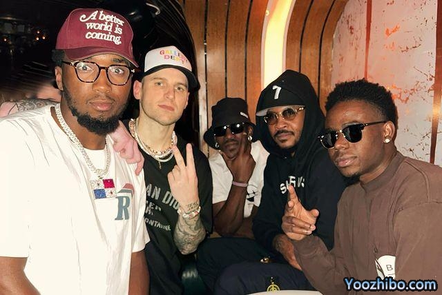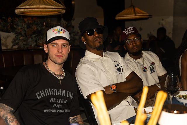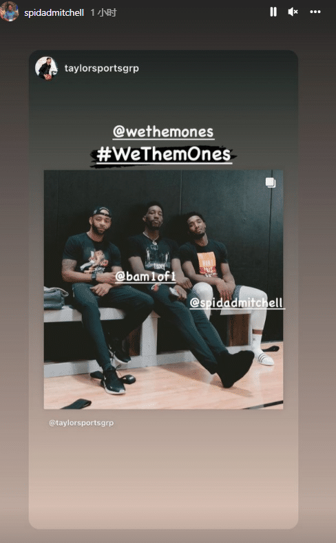 巴特勒和米切尔都身穿白色上衣,安东尼身穿印有7号的连帽衫,戴着眼镜尽显大佬范;其中米切尔帽子上印有“A better world is coming一个更美好的世界即将到来”。