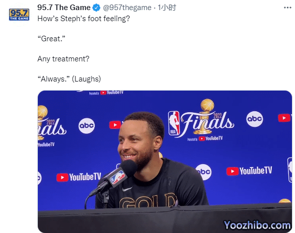 训练之后库里透露他的脚伤已经无碍,脚部感觉很好;库里还表示总决赛的强度很高,他们已经为此做好了准备。