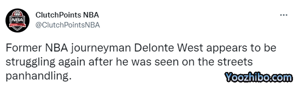 德隆蒂-韦斯特是04年首轮第24号秀,曾在NBA打过432场常规赛,场均拿到9.7分3.6助攻2.9篮板1.1抢断,先后为凯尔特人、骑士、独行侠等队效力过,生涯总薪水超1600万美元,骑士时期和詹姆斯当过队友;可是由于吸毒成瘾和心理问题,退役后的韦斯特败光家财,沦落到街头乞讨。