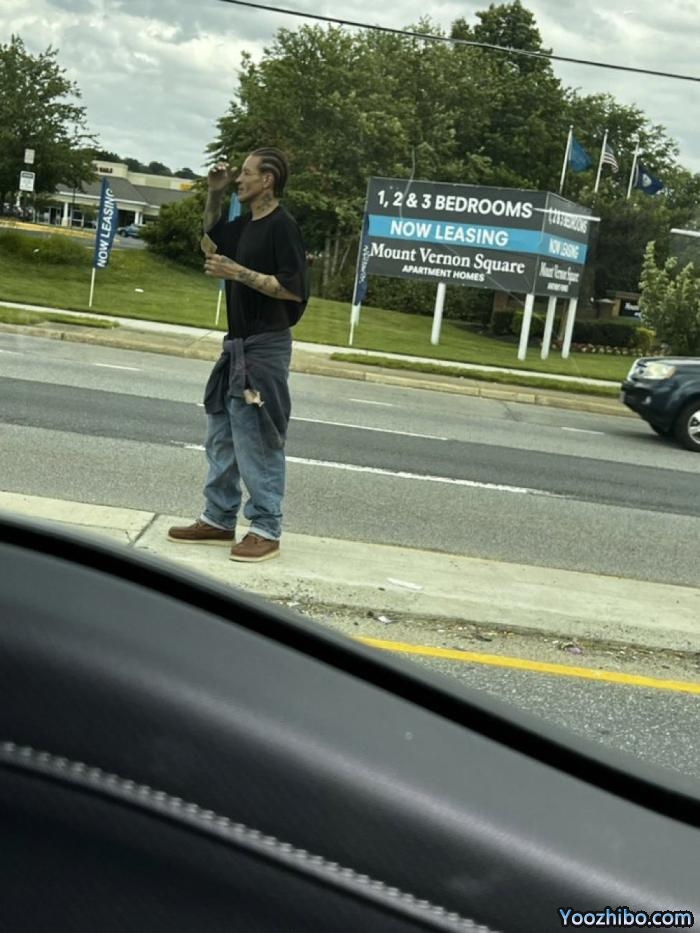 38岁的韦斯特身穿黑色T恤和牛仔裤,出现在弗吉尼亚州的公路上,可能是想向路人要钱;有球迷遇到韦斯特,和他击掌以及交流。