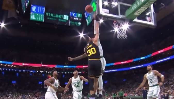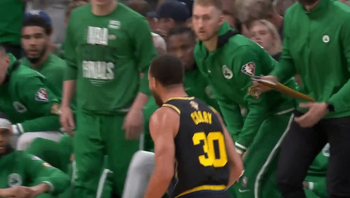 库里表现强势,他连续命中三分球,不仅帮助球队反超比分,同时还23-18直接打停凯尔特人。库里迎着布朗命中三分球,随后他兴奋庆祝。很显然库里这么快找到手感,同时扭转了开局不利的局面,对于勇士来说是非常关键的。