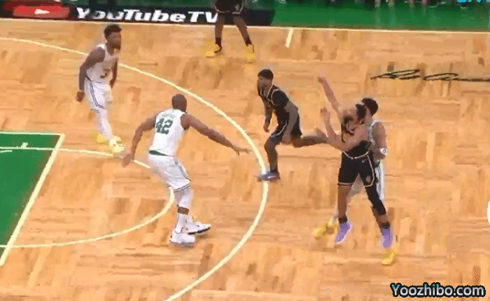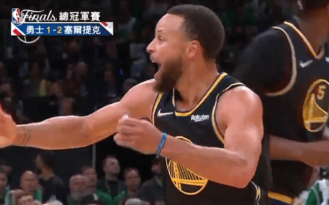 直接回到这两次极具争议的三分球。第一球,库里推进后直接出手三分。此时,凯尔特人球员在身后干扰,似乎有犯规嫌疑。库里在身体倾斜的情况下,强行将球命中篮筐。库里摊手向裁判投诉,但没有结果。很快,库里又在进攻回合中,距离三分线两步直接出手三分再中!这球,身后的塔图姆刹车不及,明显侵犯了库里。
