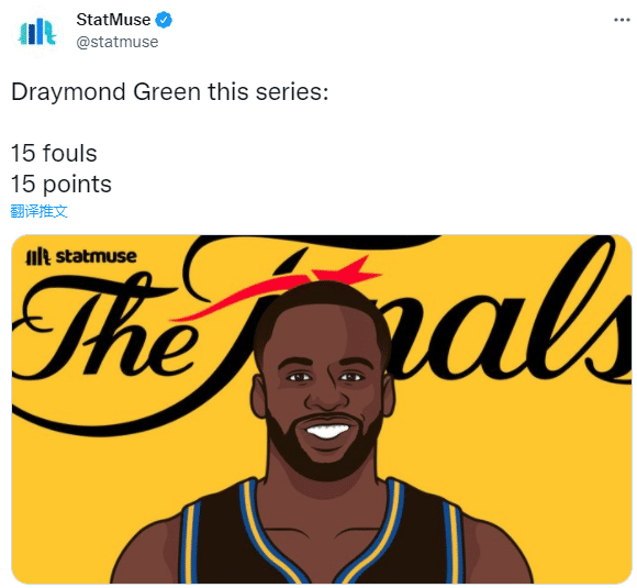 今年季后赛,格林总共参加播客节目17次,得分或者篮板或者助攻上双的比赛仅14次。
