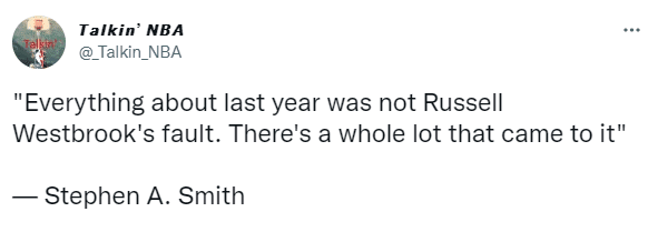 A-史密斯为威少抱不平,表示:我现在要告诉你们,湖人过去这赛季发生的一切都不是威少的错,其中还有很多因素;所以我们不要让威少觉得大家都在责备他,这不是事实。