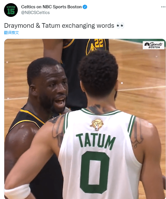 JRS直播网06月09日讯 ,勇士和凯尔特人总决赛G3,第二节场上险些发生冲突,格林和格威互喷垃圾话,所幸及时被劝阻拉开,双方都没有吃到技术犯规,这比赛打得真是火药味十足。
