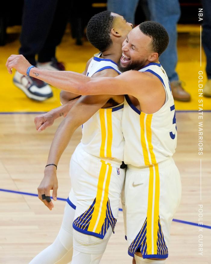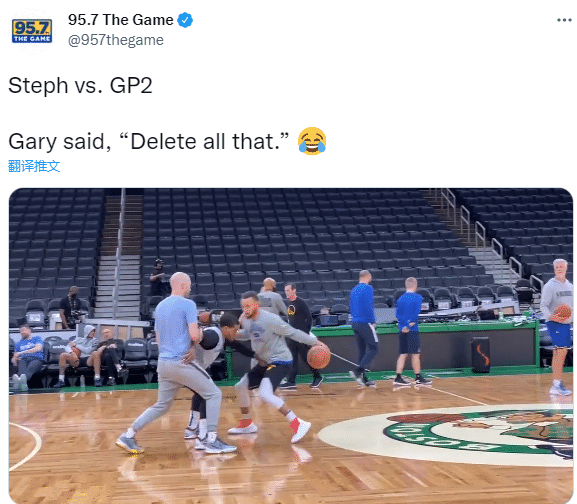 勇士全队训练欢乐多,库里和普尔比拼logo三分——普尔投进后做出盖帽的姿势干扰库里,后者三分打铁不中,此时普尔疯狂挥拳庆祝。