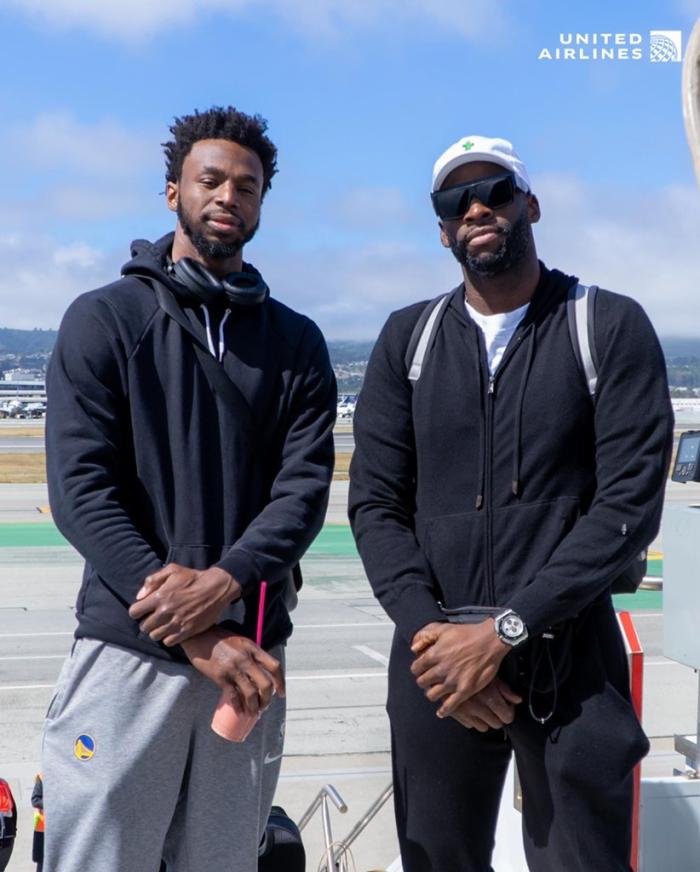 JRS直播网06月07日讯 ,经过总决赛前两场的对决,勇士和凯尔特人打成1-1平,今日勇士官方晒出众将登机飞往波士顿的照片,配文写道:从旧金山飞往波士顿;库里汤普森领衔出征客场,水花兄弟表情严肃,格林和维金斯合影,小佩顿、伊戈达拉都随队出征。