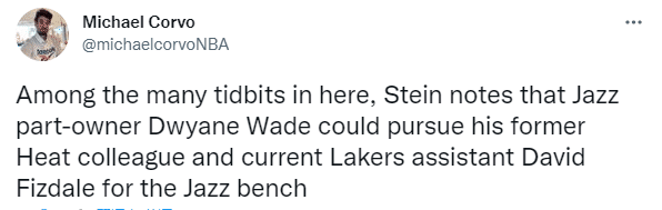 对于爵士新帅,韦德希望爵士聘请湖人助教菲尔戴尔执教球队,当然了,爵士新帅候选人有很多;不过无论谁当主帅,爵士都以米切尔为建队基石,全队只有他是非卖品,今夏爵士很可能推倒重建,斯奈德离职只是爵士重建的第一步。
