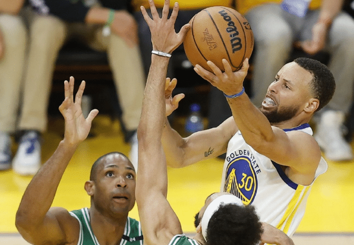 首节比赛,勇士开场不顺,库里被斯玛特贴身防守以及包夹,甚至被绿军四人围剿,不过打着打着,凯尔特人突然失误不断,勇士趁机反扑,库里三分开张,小佩顿和普尔输送三分火力,库里强突压哨抛投,第一节打完勇士31-30反超1分,库里单节10分,凯尔特人双探花塔图姆和布朗同时输出,两人单节合力投进6记三分合砍26分。
