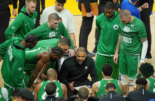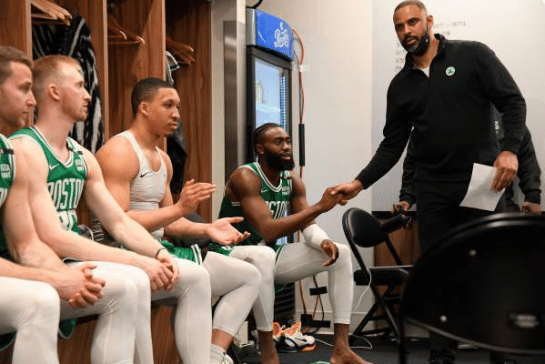 JRS直播网06月04日讯 昨天凯尔特人客场15分逆转勇士,从而拿下总决赛G1,今日NBA官方晒出斯玛特激情训话一幕,告诉队友要防出去,故意让勇士往内线突。