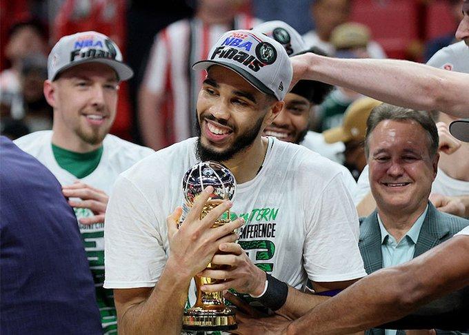 JRS直播网05月31日讯 NBA东西部决赛都已结束,凯尔特人和勇士会师总决赛,其中绿军4-3淘汰热火,塔图姆几乎全票夺得东决MVP,24岁塔图姆率队杀进总决赛,发推庆祝以及狂刷多项纪录。