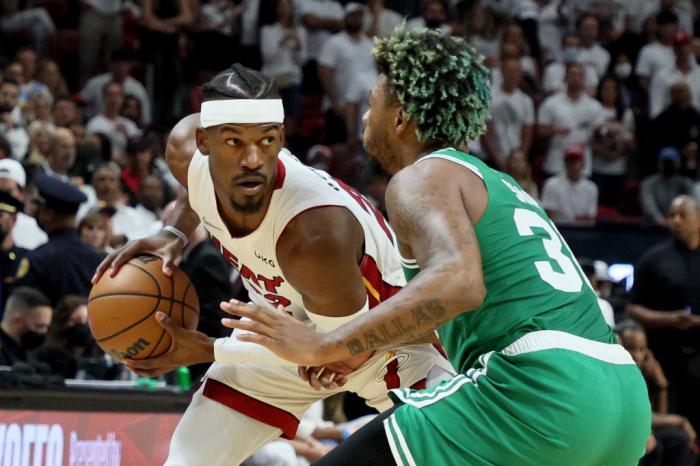 JRS直播网05月30日讯 ,NBA东决系列赛收官之战,热火主场不敌凯尔特人,3-4止步东决被淘汰出局;巴特勒全场打满48分钟,24投13中轰下35分9篮板1助攻1抢断,带伤拼尽全力,末节哑火,错失关键三分遗憾输掉系列赛,无缘复制10年前詹姆斯神迹。