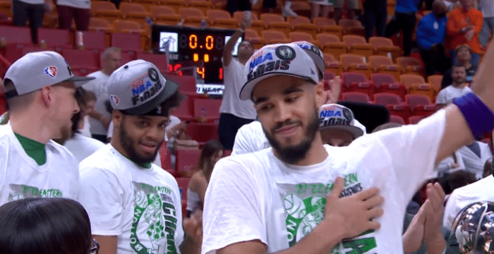 JRS直播网05月30日讯 ,NBA东决系列赛正式结束,凯尔特人4-3淘汰热火从而夺得东部冠军,时隔12年重返总决赛;塔图姆和布朗双探花都是生涯首次晋级总决赛;24岁塔图姆夺得东决MVP(拉里-伯德奖),总决赛大战勇士,将和库里争夺FMVP。