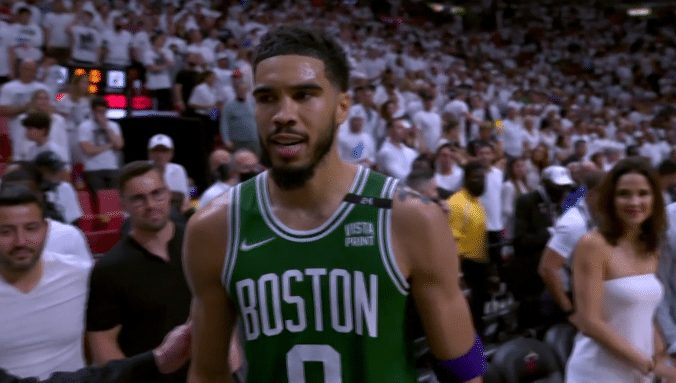 东决抢七,凯尔特人首节早早建立15分的领先,之后巴特勒带队疯狂反扑,下半场绿军再次拉开分差,末节关键时刻,塔图姆挺身而出,最终带队4-3淘汰热火,夺得队史第22个东部冠军,与勇士会师总决赛,冲击队史第18冠。