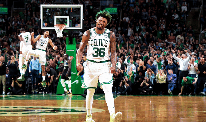 第二轮凯尔特人4-3淘汰卫冕冠军雄鹿,期间他们一度在天王山之战主场输球,斯玛特连续失误送给雄鹿3分的胜利,但很快在塔图姆、斯玛特、布朗和霍福德的带领下,凯尔特人连续大胜雄鹿,包括抢七大战提前让胜负悬念消失,他们晋级到东部决赛。