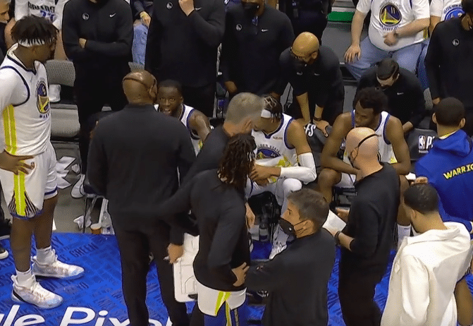 上半场的比赛勇士遭遇到了伤病打击,奥托-波特左脚受伤,本场比赛不会回归。第三节开始后,维金斯篮下打中,克莱中距离命中,库里三分投射再中,史密斯在抢篮板的时候推格林领到技术犯规,卢尼造犯规两罚全中,东契奇连续得分回应,勇士保持着5分左右的领先优势。丁威迪三分命中,维金斯篮下打中,格林大号中投得分,克莱双手暴扣得手,勇士17:9的小高潮,分差来到了9分,独行侠叫出暂停。