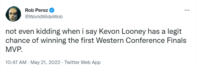 JRS直播网05月22日讯 西决G2,库里轰下32分,卢尼21分12篮板,两人都是勇士获胜的大功臣。卢尼走上罚球线时,全场球迷甚至大喊MVP,让卢尼自己都有些尴尬了。ESPN赛后的报道中写着:“卢尼抢尽风头!”有媒体人甚至表示,“卢尼真的有机会冲击第一座西决MVP,我不是开玩笑。”不少球迷也认为卢尼的表现至少值得被提名。