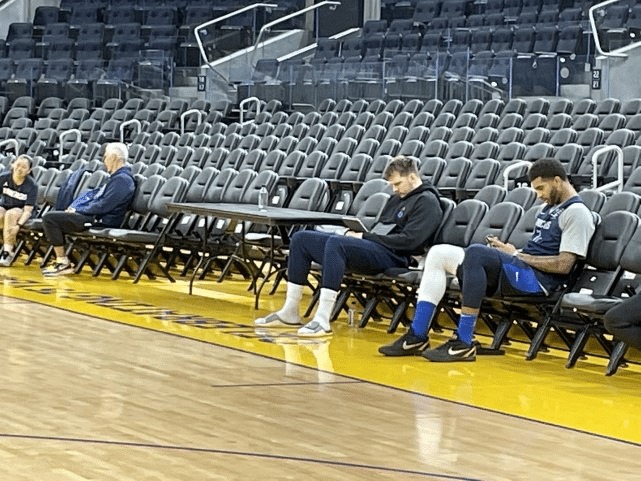 有记者拍到东契奇在训练结束后半个小时,依然坐在场边盯着笔记本电脑,原来他在密切关注老东家皇马的四强战。东契奇在加盟NBA前就效力于皇马,在欧洲打出了名堂后来到NBA。