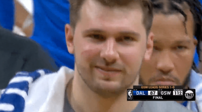 JRS直播网05月19日讯 ,NBA季后赛西决正式开打,独行侠西决G1惨败勇士,下半场溃不成军,东契奇全场18投6中、三分10中3拿到20分7篮板4助攻,下半场6投1中仅2分并且出现6次失误,被勇士防死,正负值-30太扎心;今日一战,东契奇带伤出战,挂彩破相一道血痕十分抢镜,输球后卢卡露出迷之微笑。