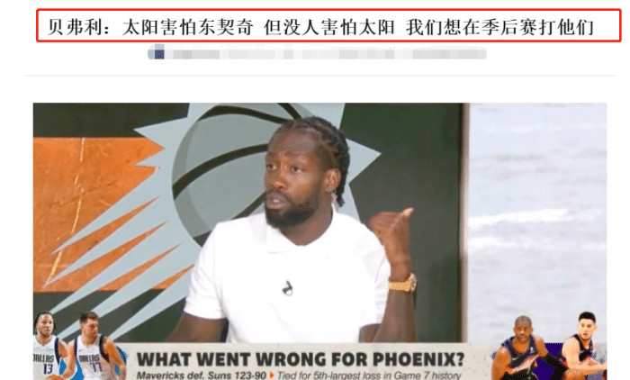 “太阳全队都知道,他们害怕东契奇,但没有人害怕太阳队内的任何人。联盟每个人都知道这件事情,你们不知道,是因为你们不在更衣室。我也想在季后赛揍太阳队,没人害怕保罗和布克”。