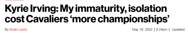 “如果我当时能成熟一些,并有很好的自我认知,我们(骑士)肯定会获得更多的冠军,因为我对人与人之间的关系会有更好的理解,而那时候我不知道如何与队友沟通我的情绪,我就干脆不说,孤立了自我。”