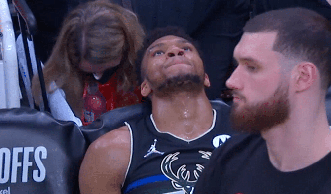 这场比赛字母哥依旧有不俗发挥,但可惜球队无缘东决,最后阶段当雄鹿大比分落后,布帅提前投降,他们将字母哥换下,字母哥坐在场边非常遗憾。赛后字母哥还是大方的拥抱了塔图姆,两大巨星惺惺相惜。