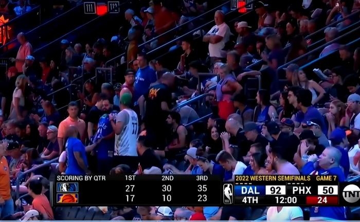 JRS直播网05月16日讯 ,NBA西部半决赛抢七太阳主场对阵独行侠。结果这场备受期待的抢七大战,常规赛联盟第一的太阳遭遇了近乎疯狂一般的溃败!半场,太阳27-57便落后30分,东契奇1人的半场得分等于太阳全队。三节结束,太阳更是50-92落后整整42分!太阳从主帅到球员,再到看台上的观众,都面露绝望。