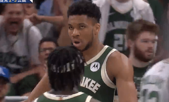 这球也点燃了雄鹿主场球迷的热情,美女球迷在看台疯狂欢呼鼓掌,解说员也不住地惊呼。这是本场比赛字母哥第2次完成隔扣!上半场,面对格兰特威廉姆斯,字母哥也是高高跃起,左手完成劈扣!这场比赛,字母哥可以说真正把球队扛在肩上,如果没有他,绿军或许早已经锁定胜局。