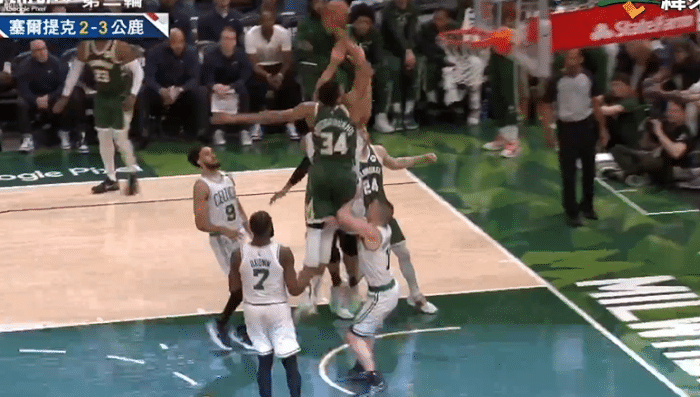 第四节比赛开始不久,康诺顿弧顶和字母哥打挡拆,字母哥顺下,康诺顿送上传球。面对绿军多人的补防,字母哥选择无视,高高跃起泰山压顶一般将球砸进篮筐!与此同时,补防的普理查德直接被撞飞3米远,而格兰特威廉姆斯也被视若无物。不得不感慨,字母哥的爆发力和身体素质实在太强了。