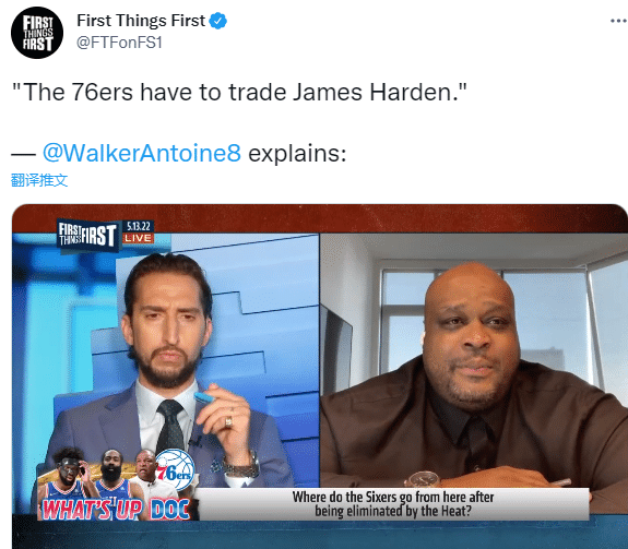 前NBA球员安东尼-沃克在节目中表示:76人应该交易哈登;沃克还表示G6生死战43分钟出手9次太令人烦恼,即使倒下也要进攻,要知道他可是场上最好的一对一球员之一。