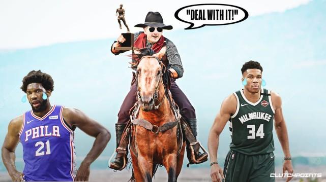 约基奇在马厩外展示MVP奖杯,调侃当自己又老又胖后,希望还能记得这个奖项。